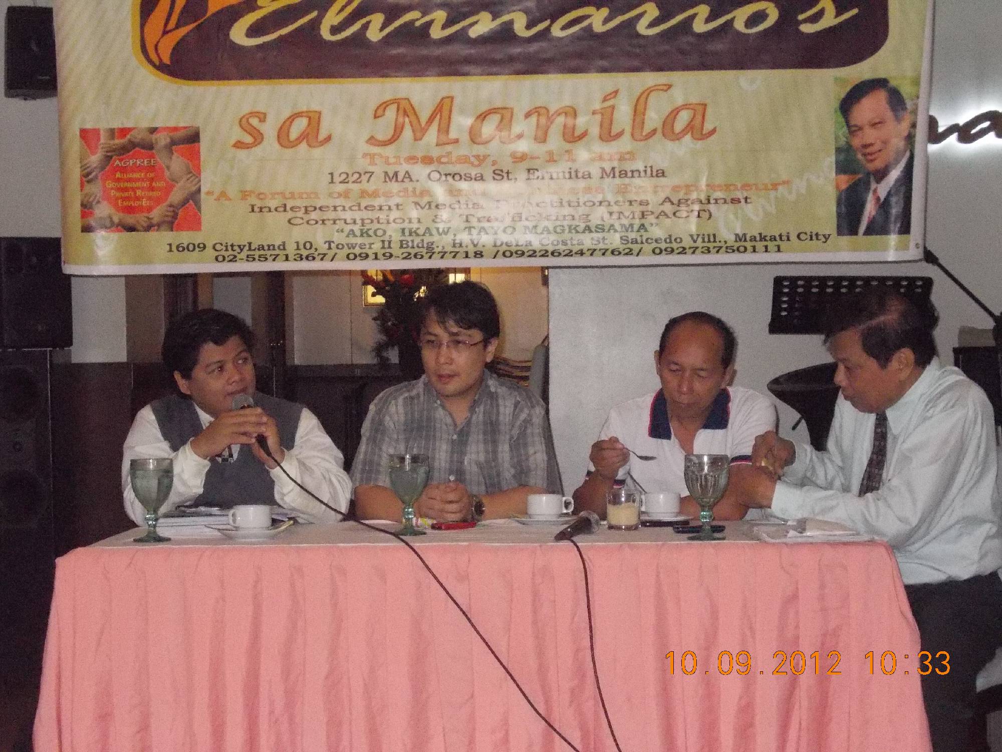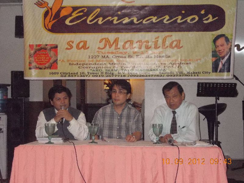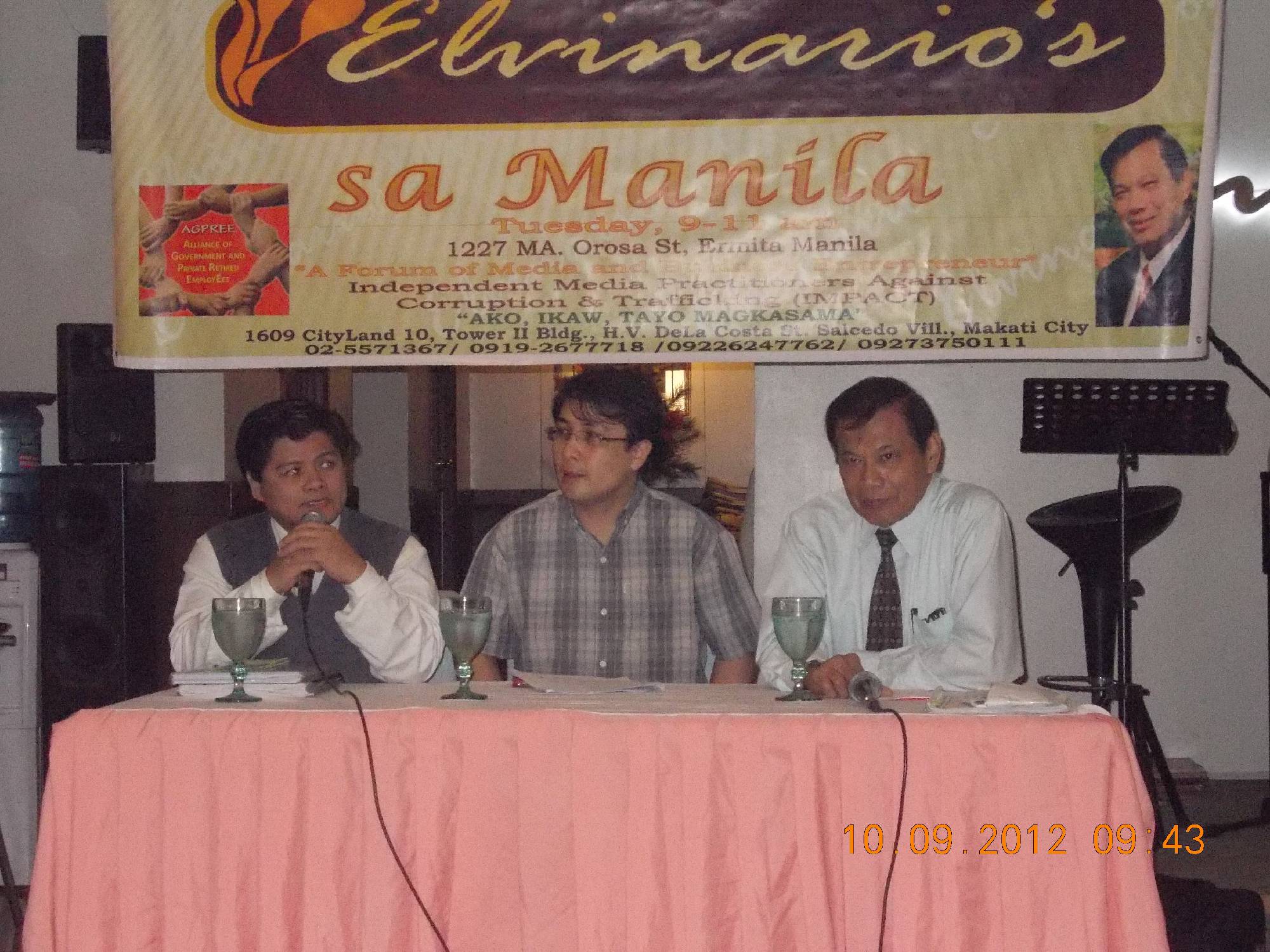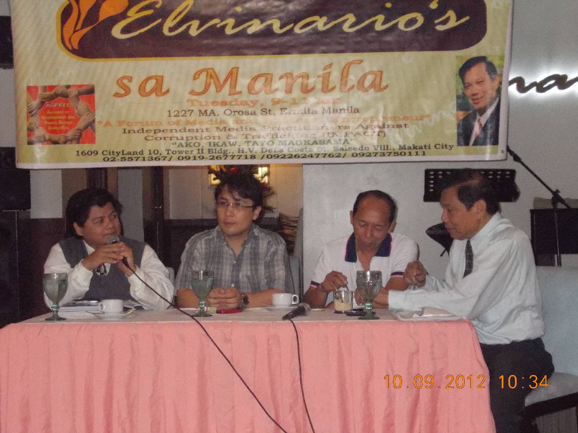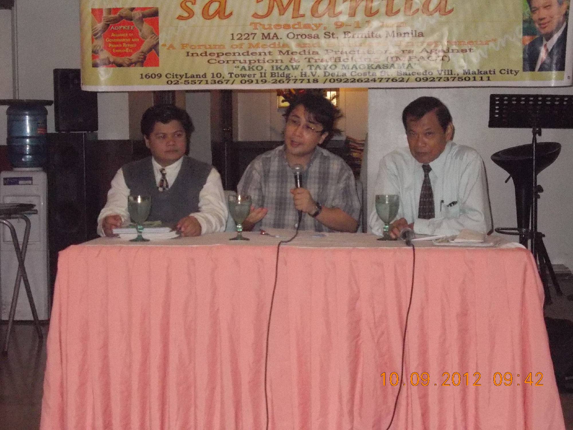 A Forum of Media and Business Entrepreneurs hosted by the Independent Media Practitioners Against Corruption and Treafficking (IMPACT) held at Ma. Orosa St., Ermita Manila.