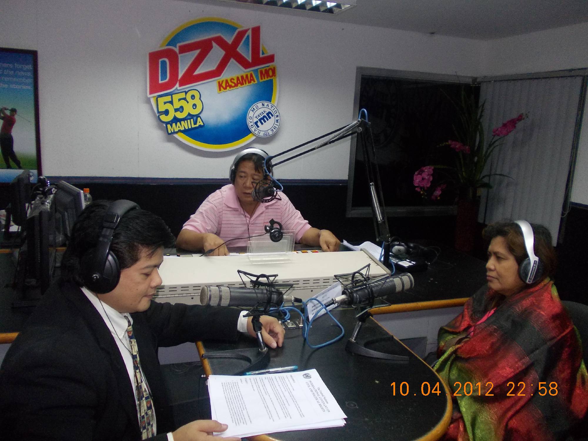 DZRB Radio ng Bayan, 30 September 2012 DZRB Radio ng Bayan, 07 October 2012 Guested at Ka Popoy Pagayon's weekly program for members of the Filipino Inventors Society Producer's Cooperative and discussed several issues on Cybercrime, Online Libel, Online Reputation Management, How to put your Business Website on Top of the Google search engine's page results, Online Scammers, Computer and Mobile Phone Hacking.